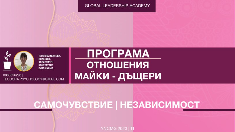 За повече информация и записване, свържете се с мен и на 0888856295 – Теодора, водещ и координиращ програмата, психолог, холистичен консултант, екип YNCMG.